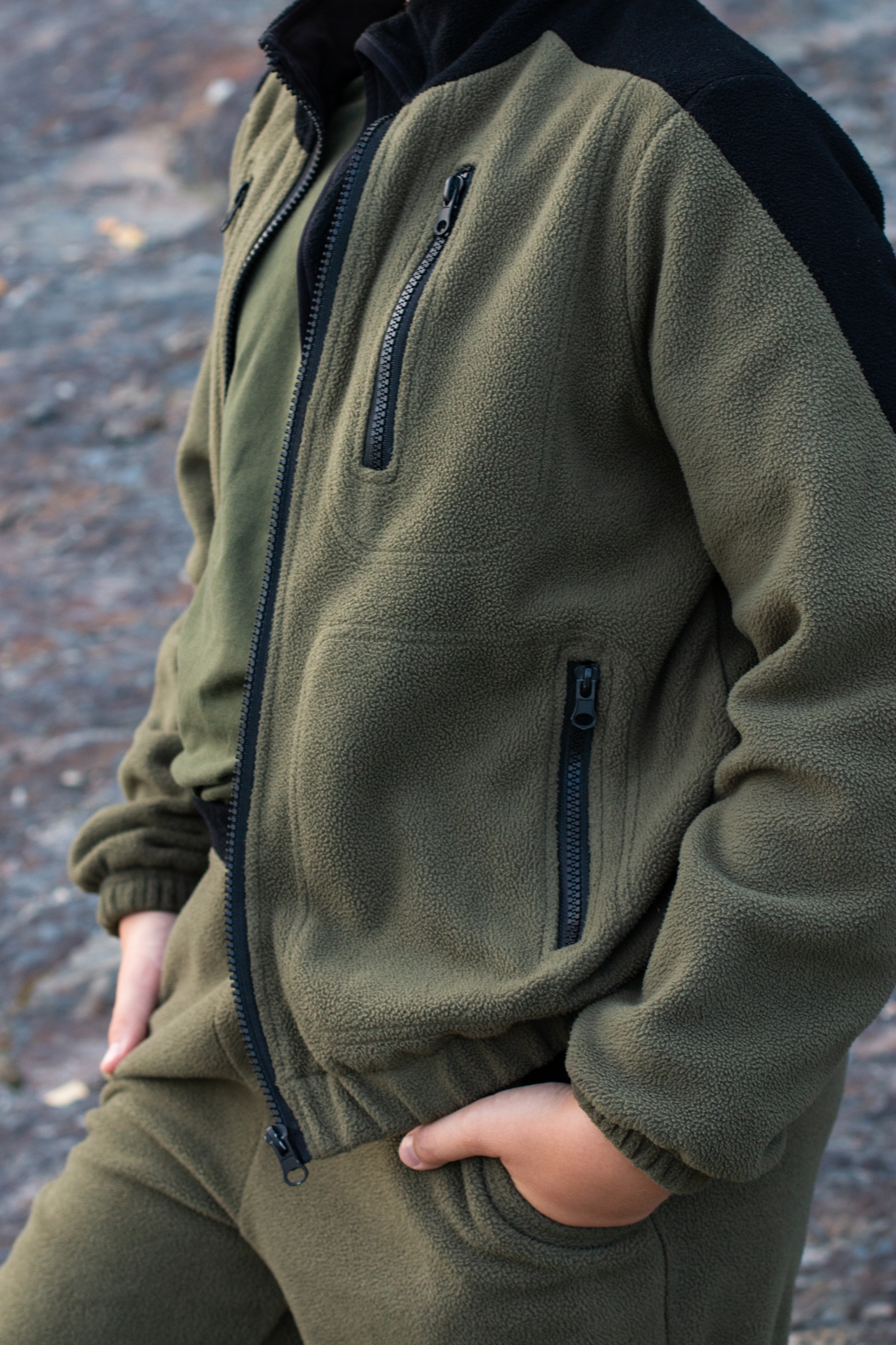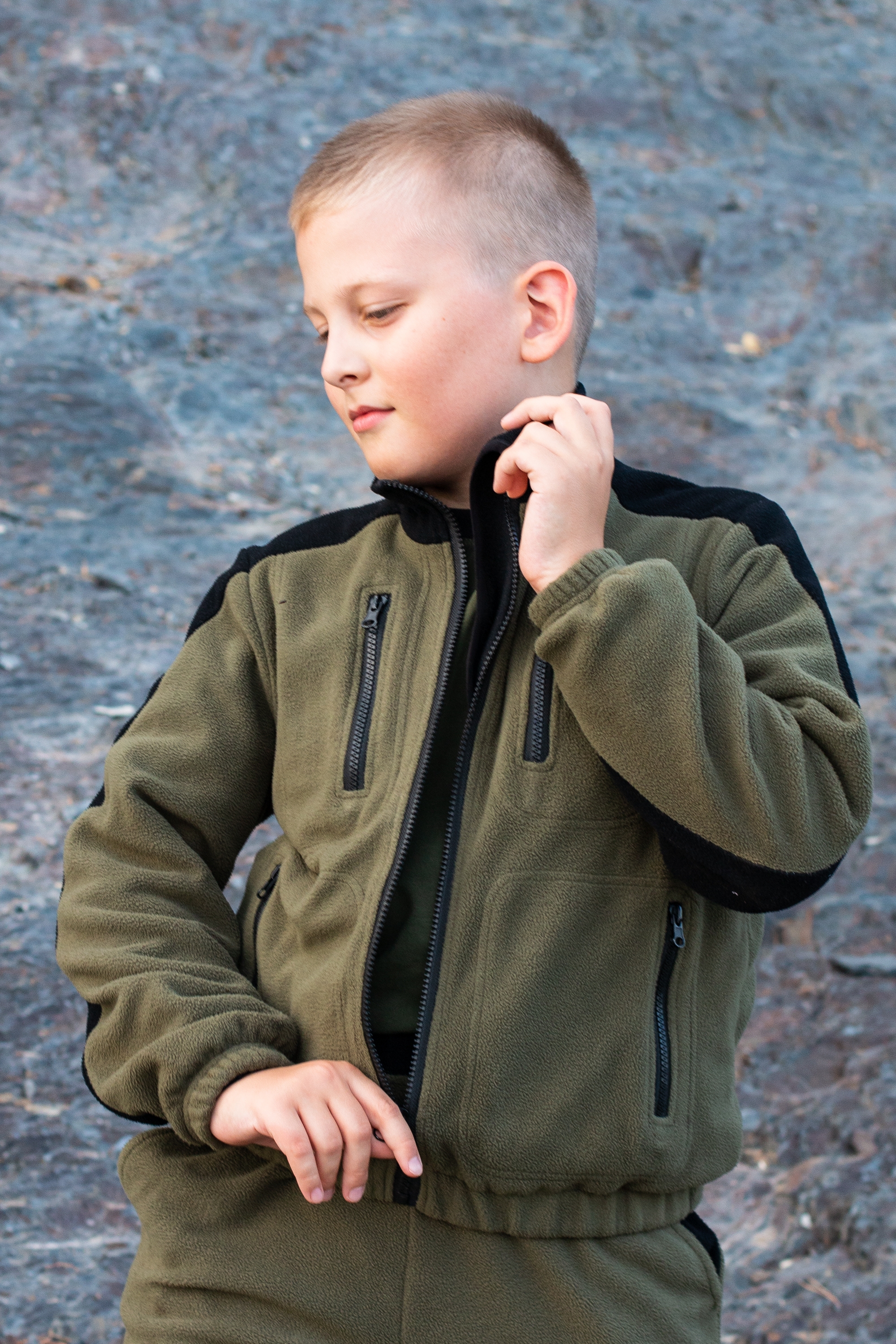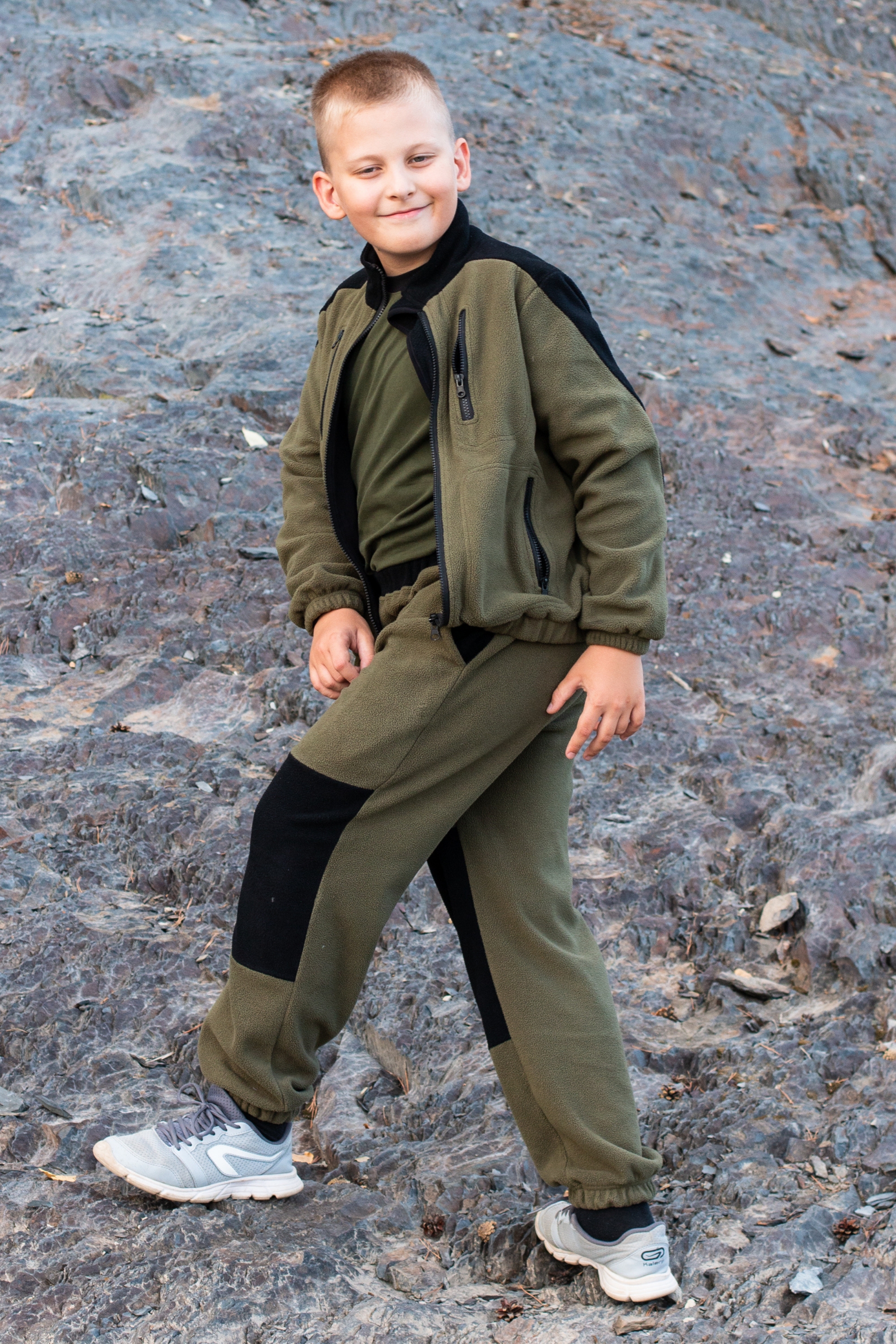 Детский флисовый костюм бренда Kostarina – идеальный выбор для активного отдыха и повседневной носки! Комбинированные цвета хаки и черный подчеркнут  стиль, а материал плотностью 280 г/м² обеспечит комфорт даже в прохладную погоду. Преимущества: