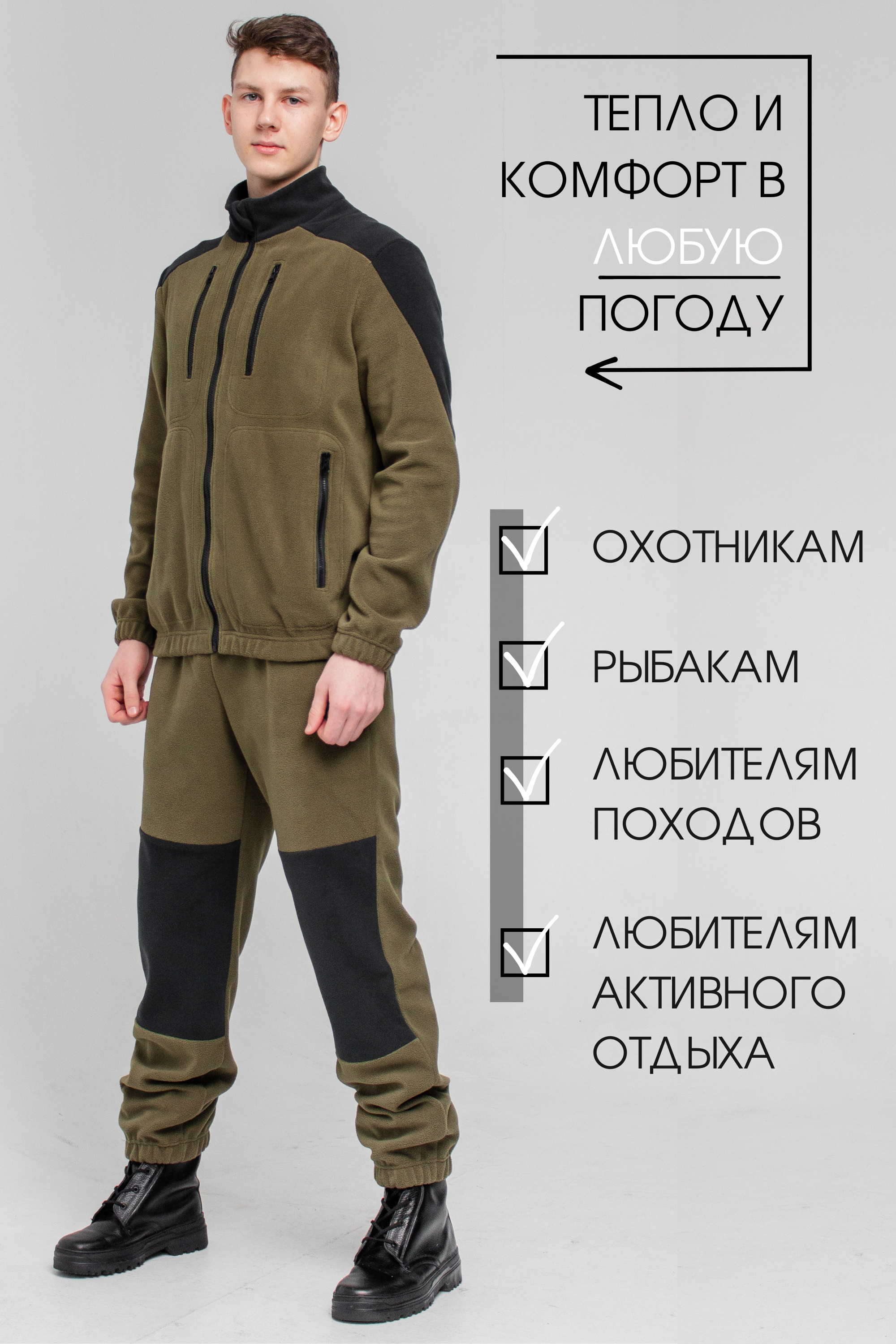 Мужской флисовый костюм бренда Kostarina – идеальный выбор для активного отдыха и повседневной носки! Комбинированные цвета хаки и черный подчеркнут ваш стиль, а материал плотностью 280 г/м² обеспечит комфорт даже в прохладную погоду. Преимущества: