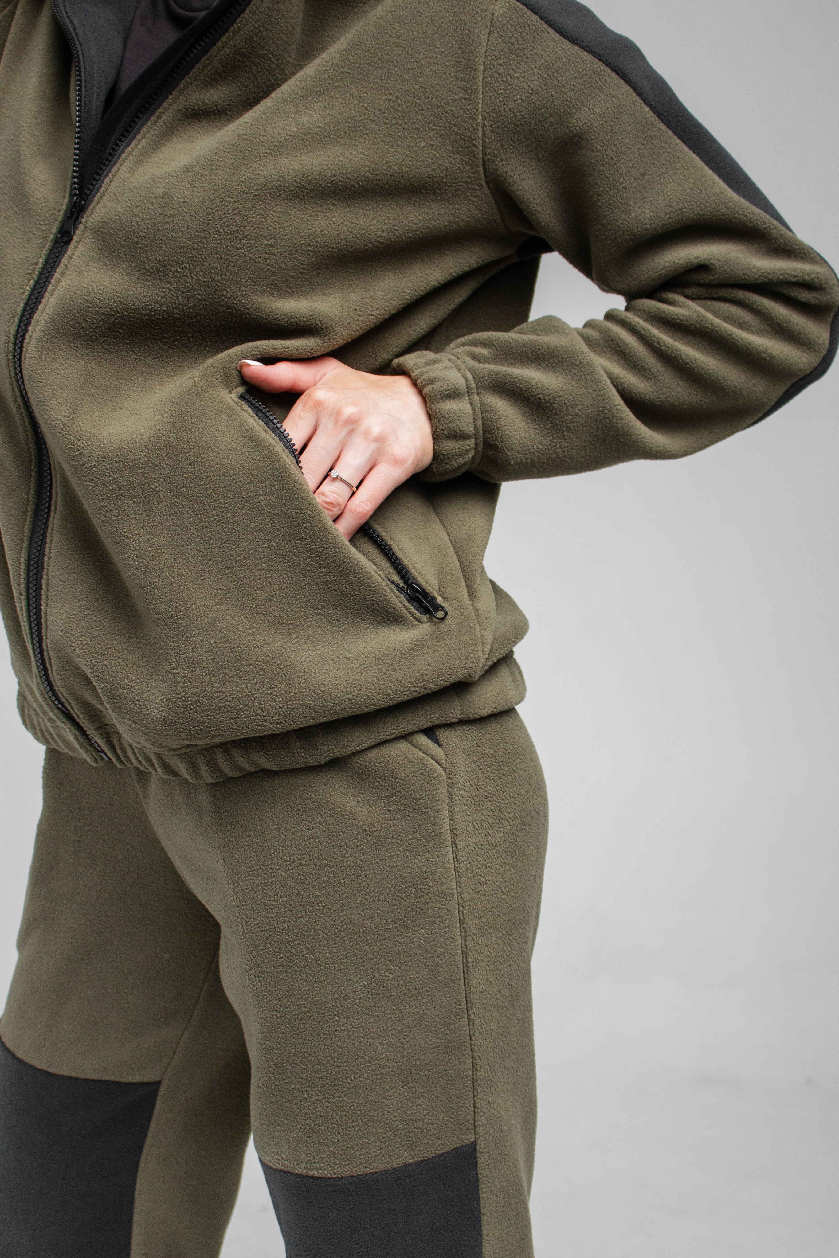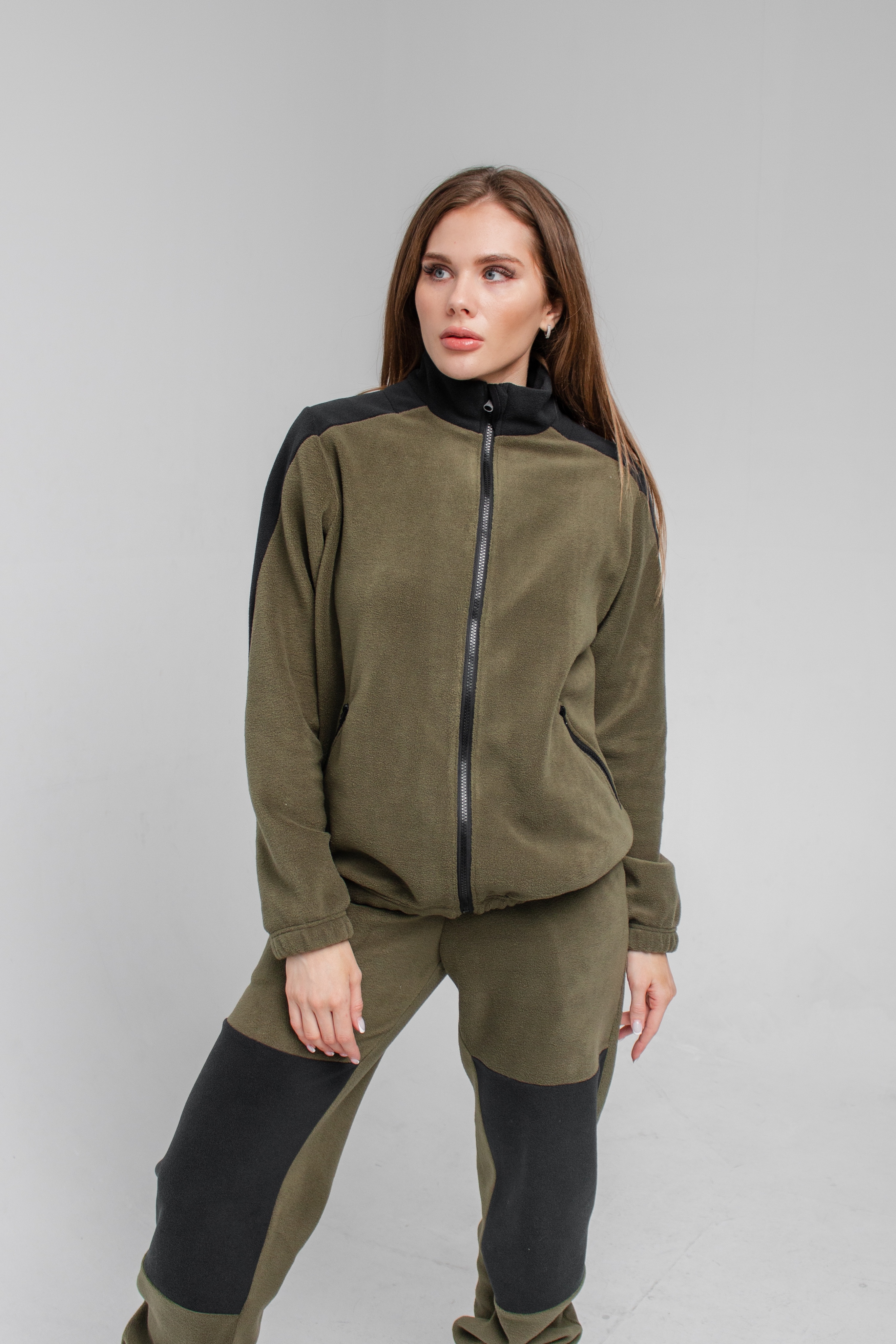 Женский флисовый костюм бренда Kostarina – эталон уюта и стиля для активной жизни! Классический хаки в комбинации с чёрным создает сдержанный и универсальный образ, а флис плотностью 280 г/м² гарантирует тепло и комфорт в любую погоду.