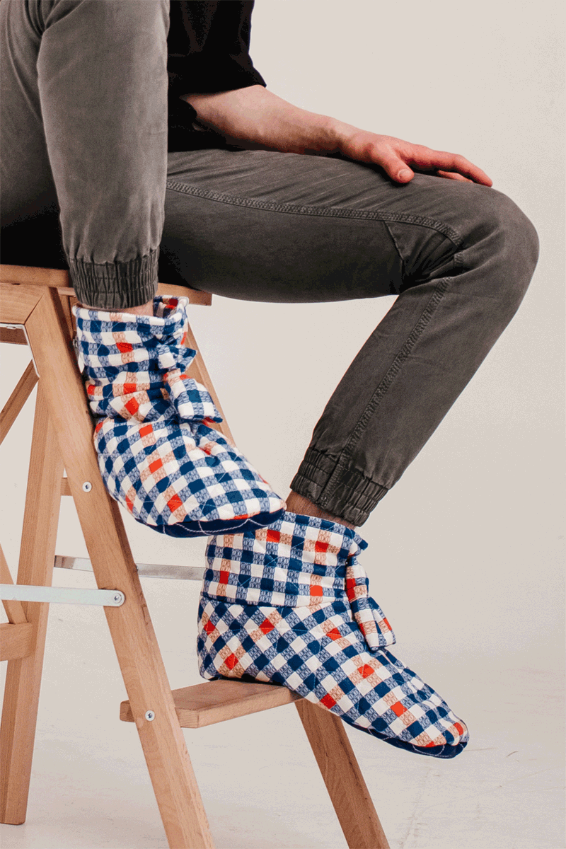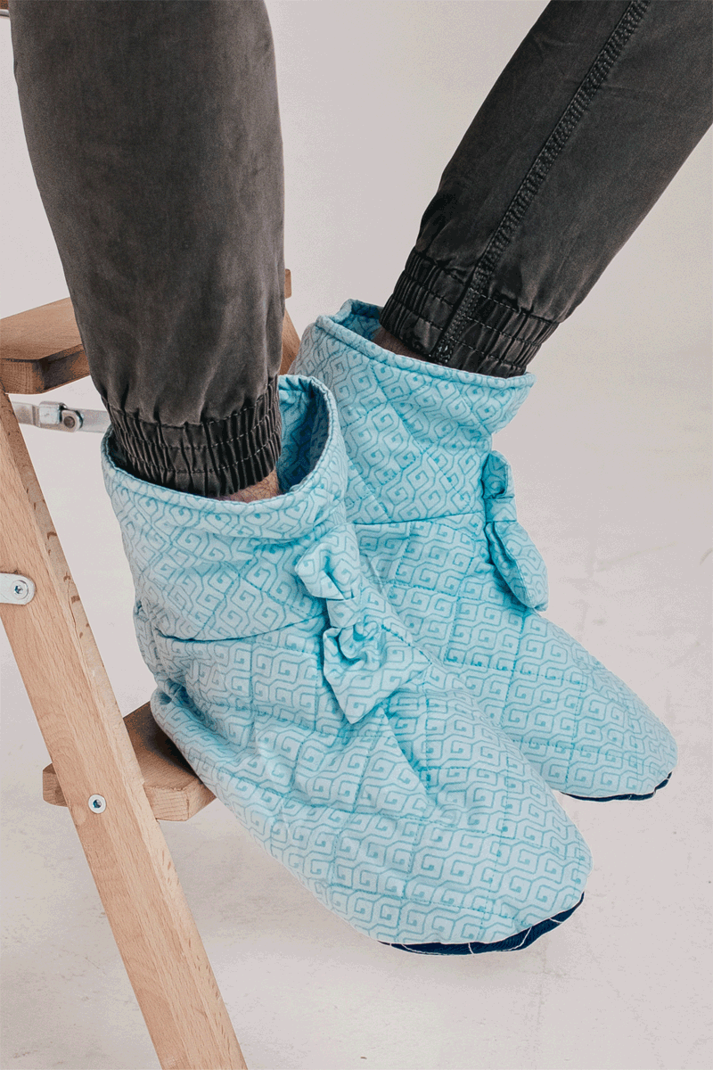 Эти тапочки появились из личной истории. Наш конструктор разработал их для своих прихотливых ножек, которые не любят домашнюю обувь и даже носки. Результат — тапочки, которые почти не чувствуются на ноге, но при этом идеально сохраняют тепло.